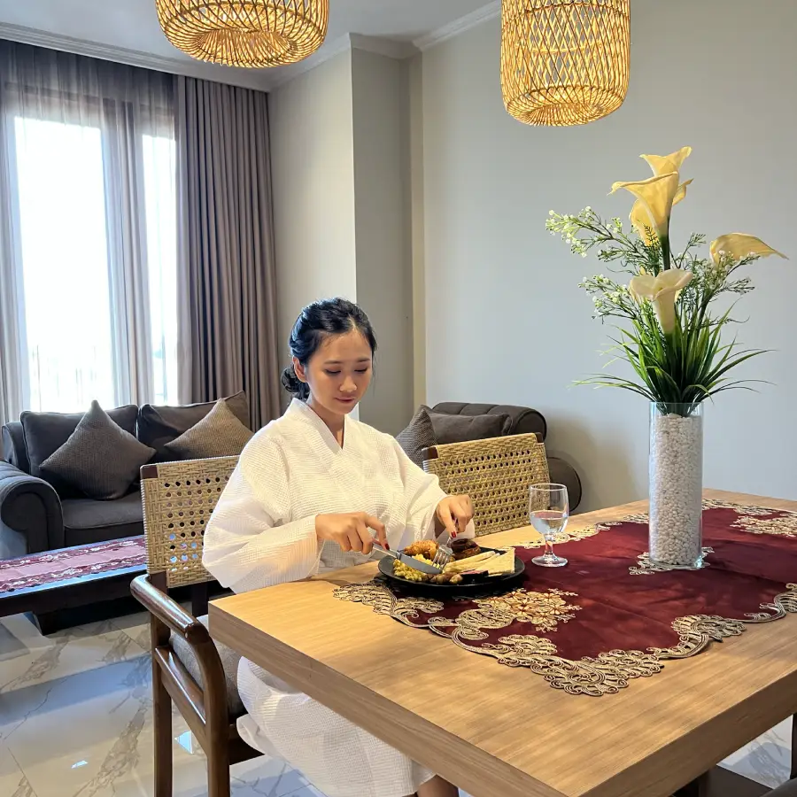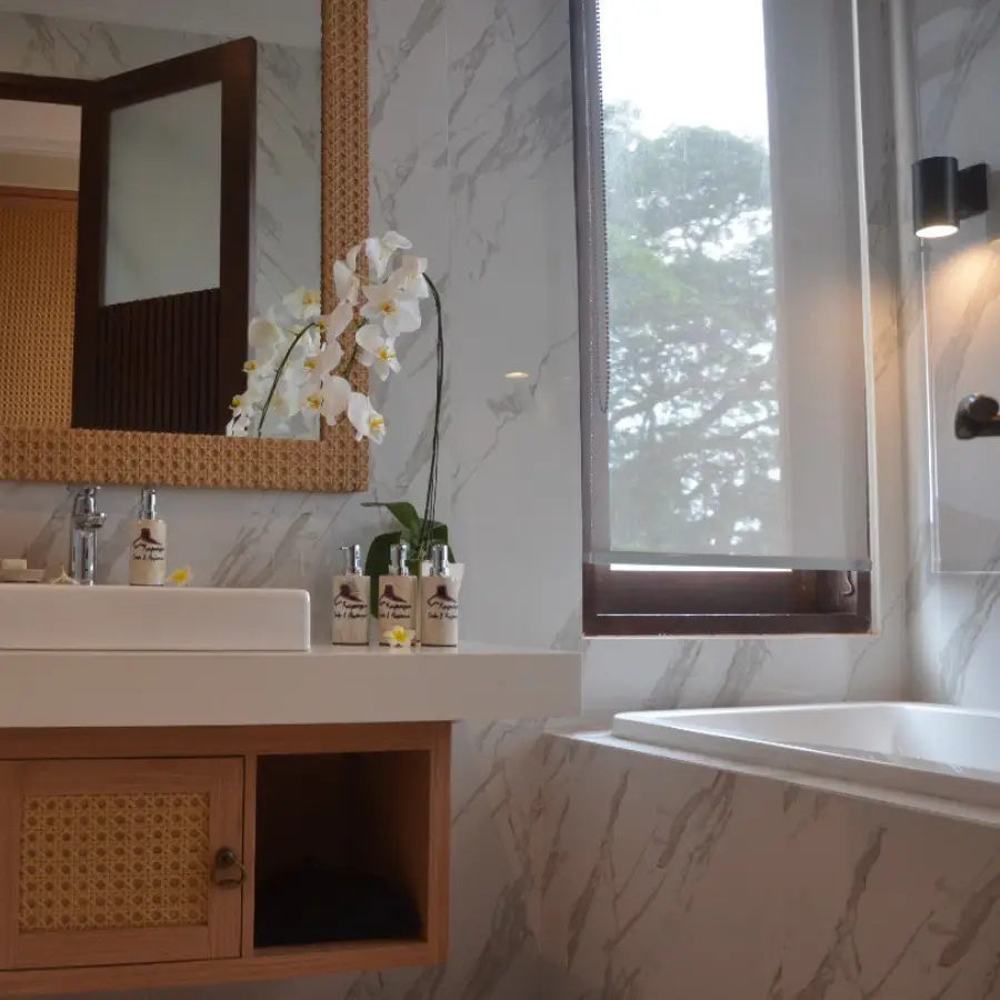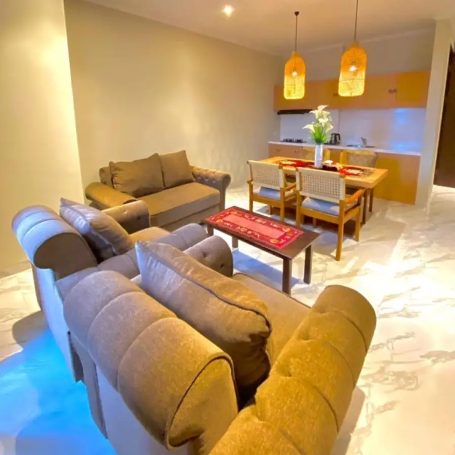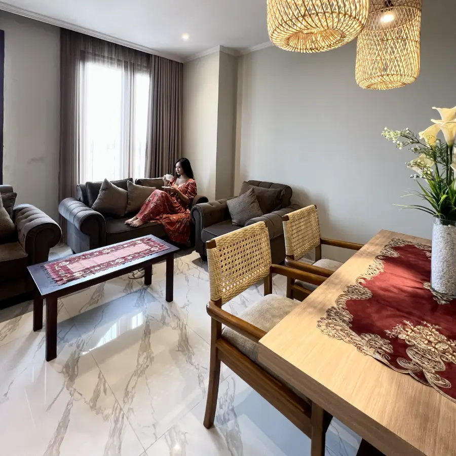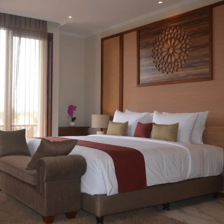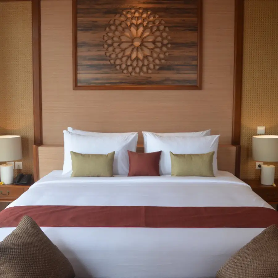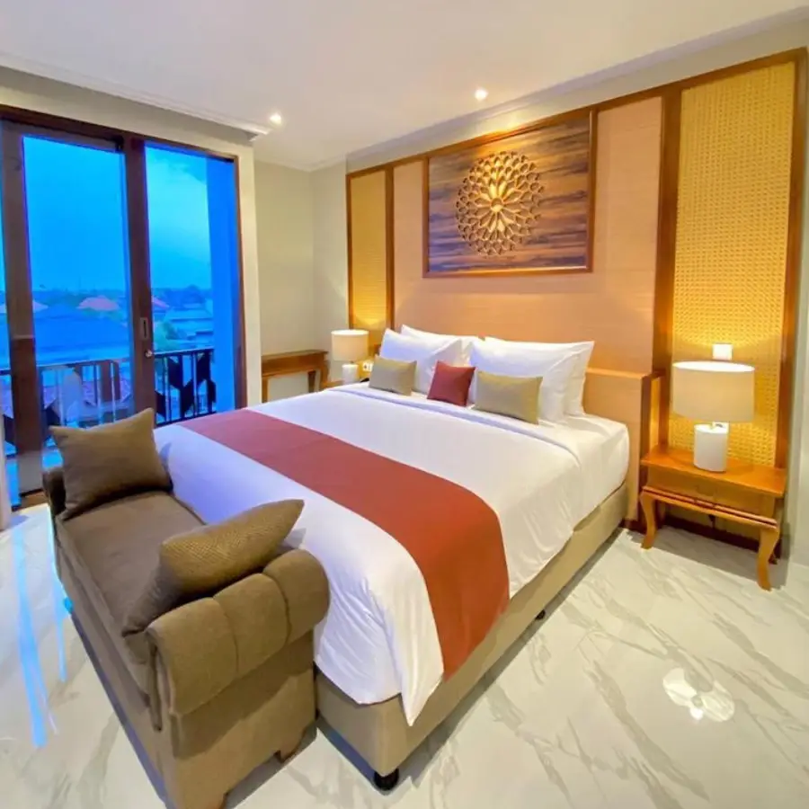 The most spacious room that we provide in our hotel. The Suite Room is basically a semi apartment room where there is a living room with TV and karaoke utilities, dining room with a kitchen set, a main bathroom with bath up and shower, a guest bathroom, premium bed and sheet, and a balcony with mesmerizing view of Sanur from height